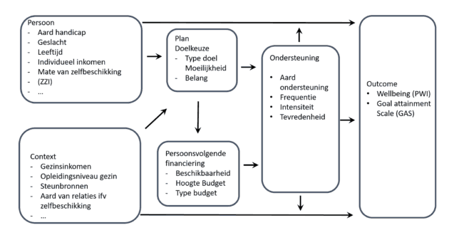 Als ondersteuning gericht moet zijn op kwaliteit van bestaan, wat betekent dat dan voor persoonsvolgende financiering? Onderzoek in opdracht van het VAPH ontwikkelde reeds een theoretisch model.Ferket, N., Claes, C., en De Maeyer, J. (2017), Samenvattend rapport: het ontwikkelen van een theoretisch model over de relatie tussen Persoonsvolgende financiering (PVF) en Quality of life (QOL), Brussel, VAPH, onuitgegeven publicatie.
