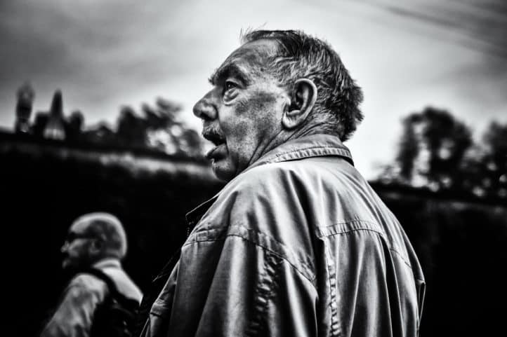 “Laten we weggaan.” Ik twijfel. Zal ik haar aanspreken? Zal ik haar vragen of ze iets heeft tegen de man die hier bij me zit? Kent ze hem? Heeft hij hier al eens problemen gemaakt? Heeft ze zijn grote zak met kledij gezien? Weet ze dat hij dakloos is? Hij lijkt heel duidelijk te beseffen dat hij hier niet welkom is en hij wil weg. Zelf geeft hij me geen info over een mogelijke reden. Hij wil er blijkbaar geen woorden aan vuil maken. Ik besluit hem te volgen in zijn beslissing en we gaan weg.