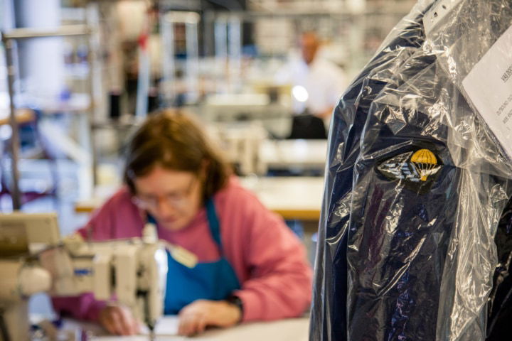 “Neem het retoucheren van kledij. Dat is vrij moeilijk en vergt best wat vakkennis. Omdat die er vaak niet is, zijn we op zoek gegaan makkelijkere stikwerken. Zo hebben we een samenwerking opgezet met het Belgisch leger. Telkens als iemand in het leger promotie maakt, moet er een kenteken of extra streepje op het uniform gestikt worden. Dat doen wij nu. Het is eenvoudiger dan een retouche.”