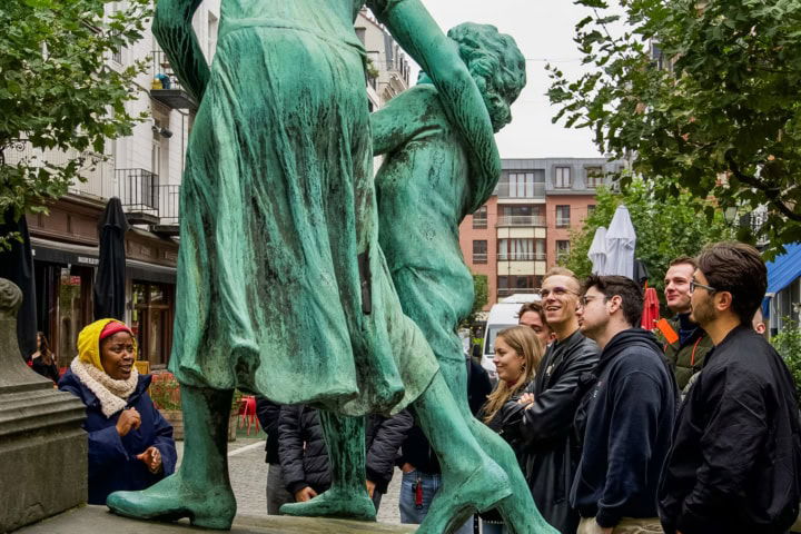Een groep volgt een rondleiding in Matonge.