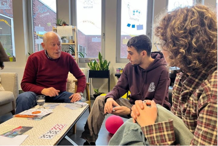 Studenten en ouderen uit de buurt vinden er elkaar door koffie, creativiteit, kleine herstellingen, gesprekken en gedeelde interesses. Wat hen bindt, is niet hun leeftijd of opleiding, maar de nood aan ontmoeting, rust en betekenisvolle verbinding.